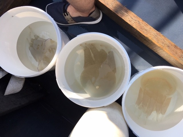 We had local aquarium staff take us out by boat to collect a large jellyfish called a Rhizostoma octopus.