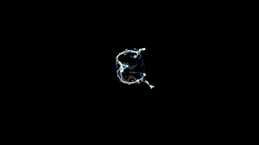 This species is a jellyfish that can reach a bell height of about 30 mm, but breeding specimens have not been successfully cultivated to that size.