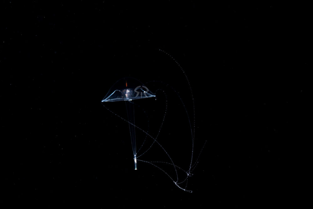 They has four long tentacles, with the one extending from the center of the bell serving as the mouth.