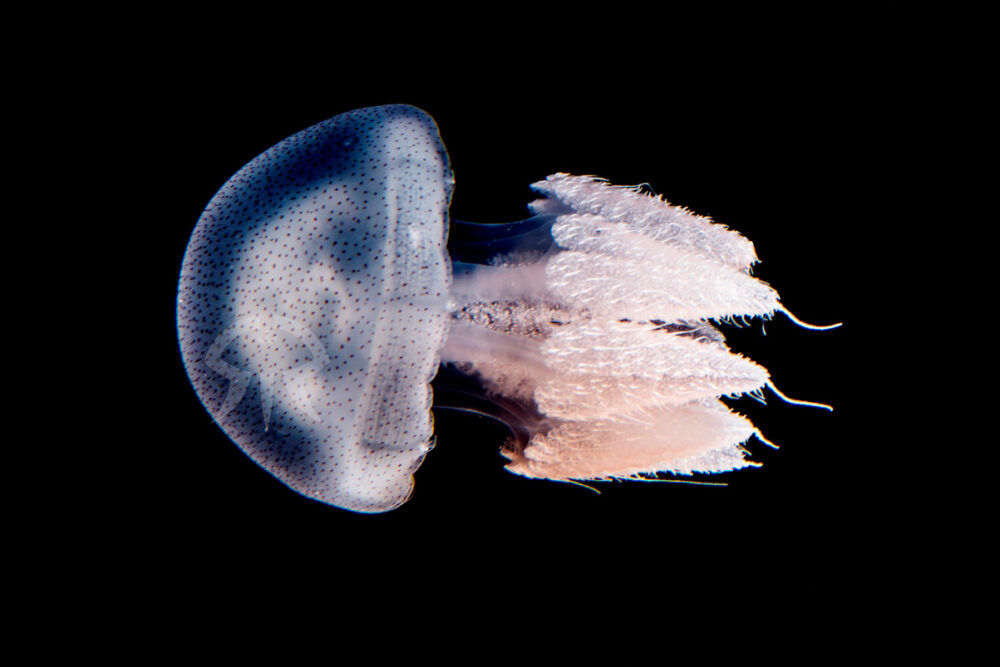 分類:刺胞動物門 鉢虫綱 根口クラゲ目 カトスチルス科 イトヒキクラゲ属