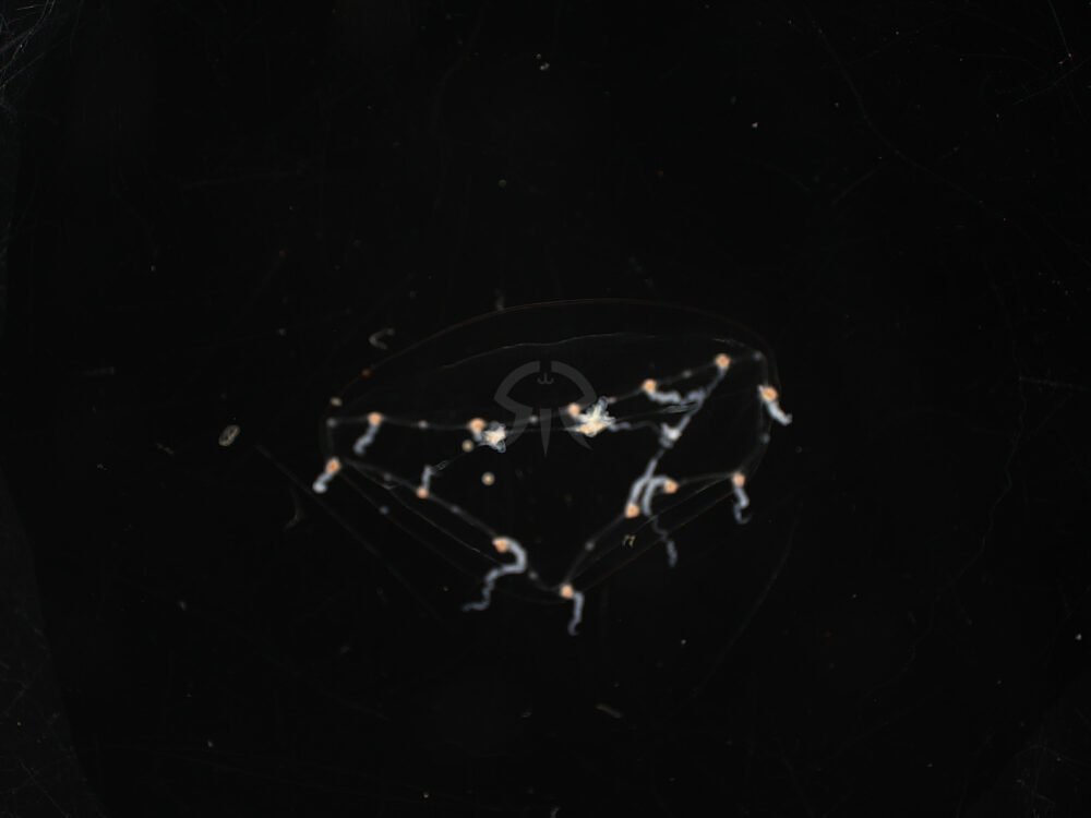 傘径は8mmほどで、日本各地で春から秋に見られる。本種は口が複数できてから、体が分裂して増えていくというおもしろい特徴がある。口がない部分でちぎれてしまうと、その部分は生存できない。エアーによる水流が強すぎてもバラバラになって死んでしまう。当館ではポリプも得て繁殖して維持している。