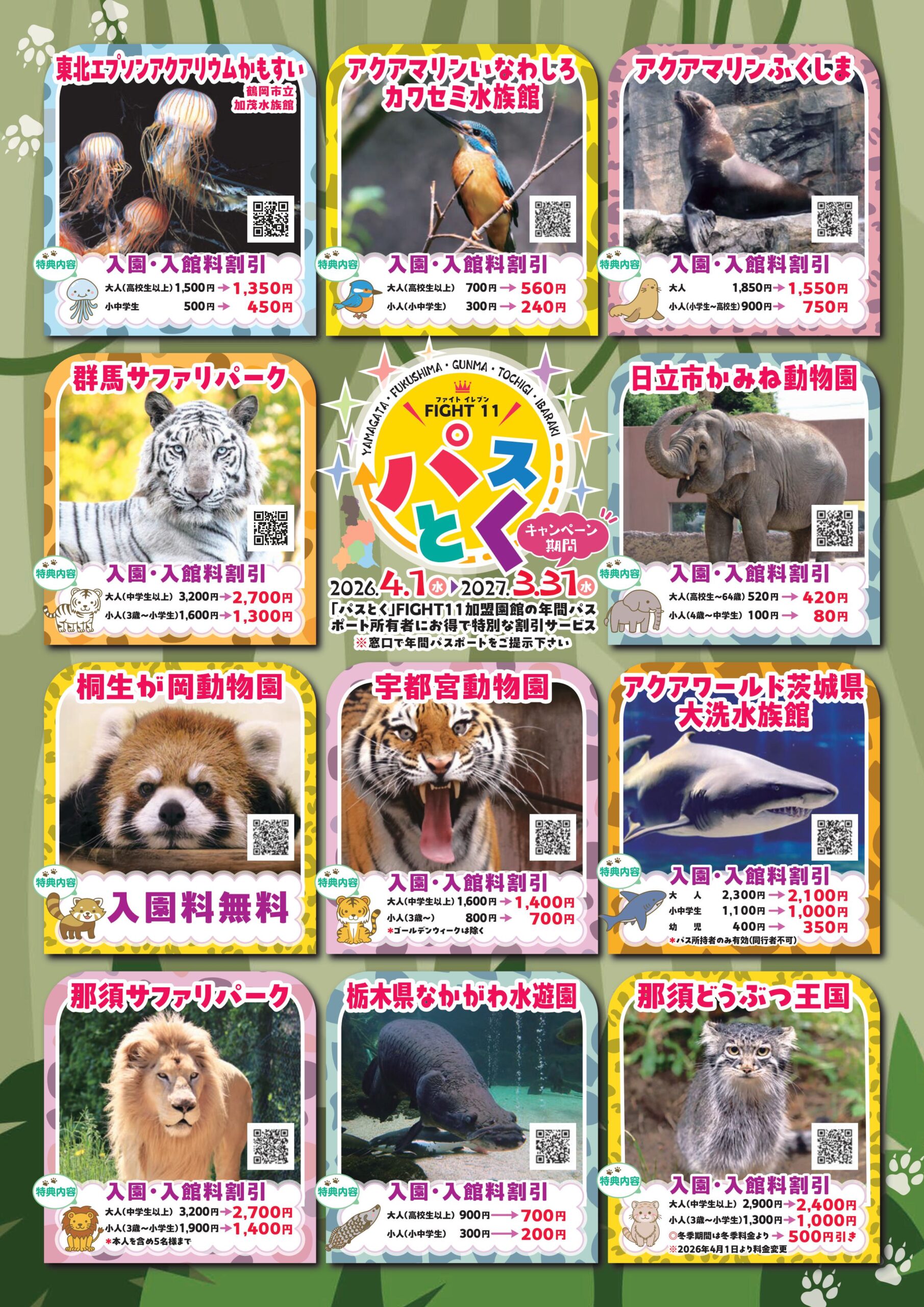 福島県・茨城県・群馬県・栃木県・山形県の動物園・水族館、11園館が連携し、生き物とのふれあい通じて学習と癒しを提供するため、様々な企画を開催していきます。